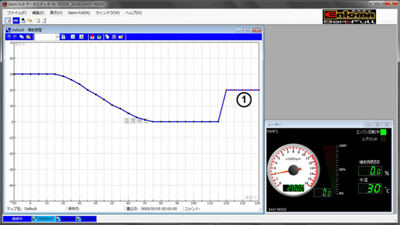※ このマップの場合、エンジン温度が120度になったらエンジン保護のため燃料を20%増量する設定になります。