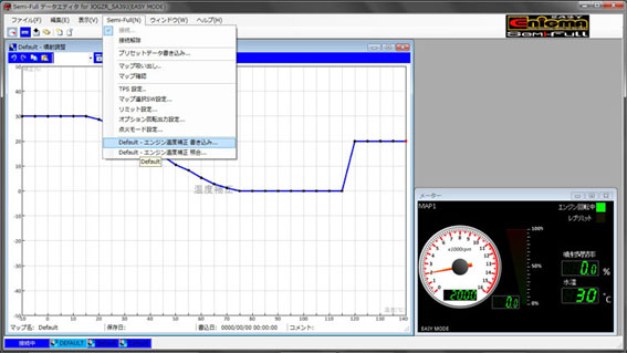 4. 必要な修正が終わりましたら上部メニュー「Semi-Full」→「エンジン温度補正 書き込み」を選択し、書き込みを行います。