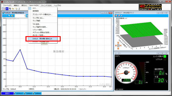 4. 値変更が終わりましたら、画面上部メニュー「Semi-Full」→「無効噴射 書き込み」を選択します。