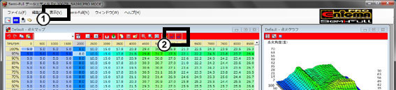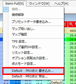 2.必要な修正が終わりましたら、上部メニュー「Semi-Full」→「PROフル点火書き込み」を選択し、書き込みを行います。