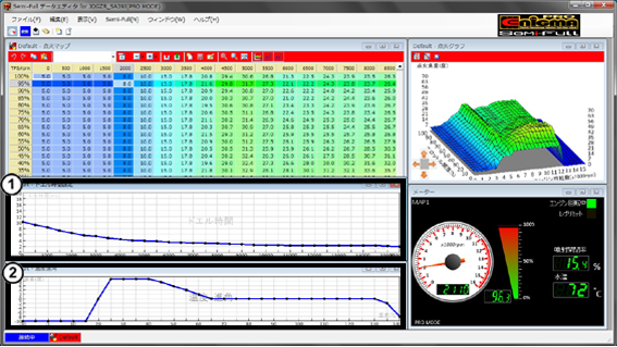 ドエルタイム調整画面では、ECUが出力したドエルタイムを縮めたり、伸ばしたりすることが出来ます。